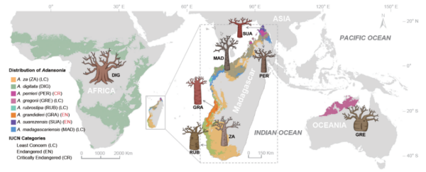 猴面包树属植物现今全球分布格局及IUCN濒危保护等级