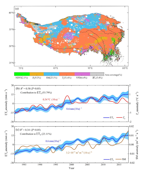 在全球变暖的背景下,青藏高原呈现出暖湿化和失衡趋势,高原的水循环过程也相应表现出一定的变化特征。在这一变化背景下,青藏高原蒸散发如何响应以及青藏高原蒸散发的响应变化受何种因素主导,是当前高原水循环研究亟需解答的科学问题。