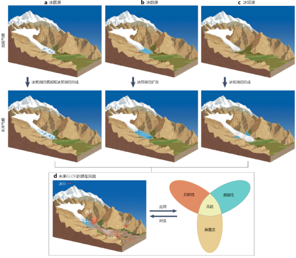 研究发现,全球冰湖数量、面积和体积区域分布差异明显。同时,研究预估,未来全球GLOF的风险总体增加,但存在区域差异。