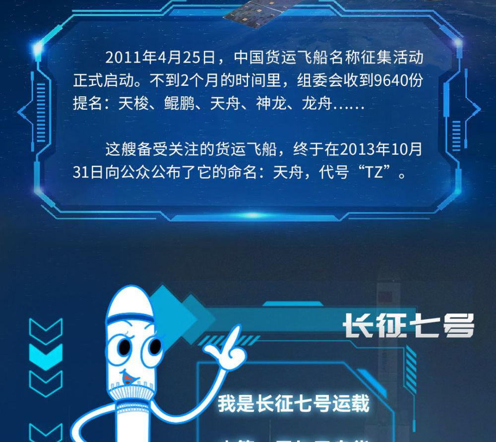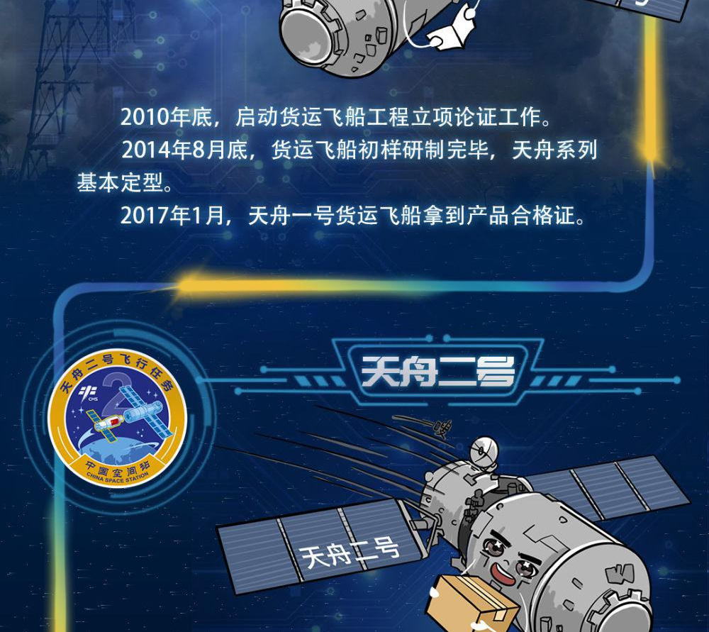 1月18日凌晨,天舟七号货运飞船与空间站组合体完成交会对接,又一批“太空快递”顺利送达。这是中国航天人第七次送天舟出征星海。天舟的名字是怎么诞生的?天舟的“御用”火箭是谁?天舟一号到天舟七号各有什么特点?一起来看看吧!